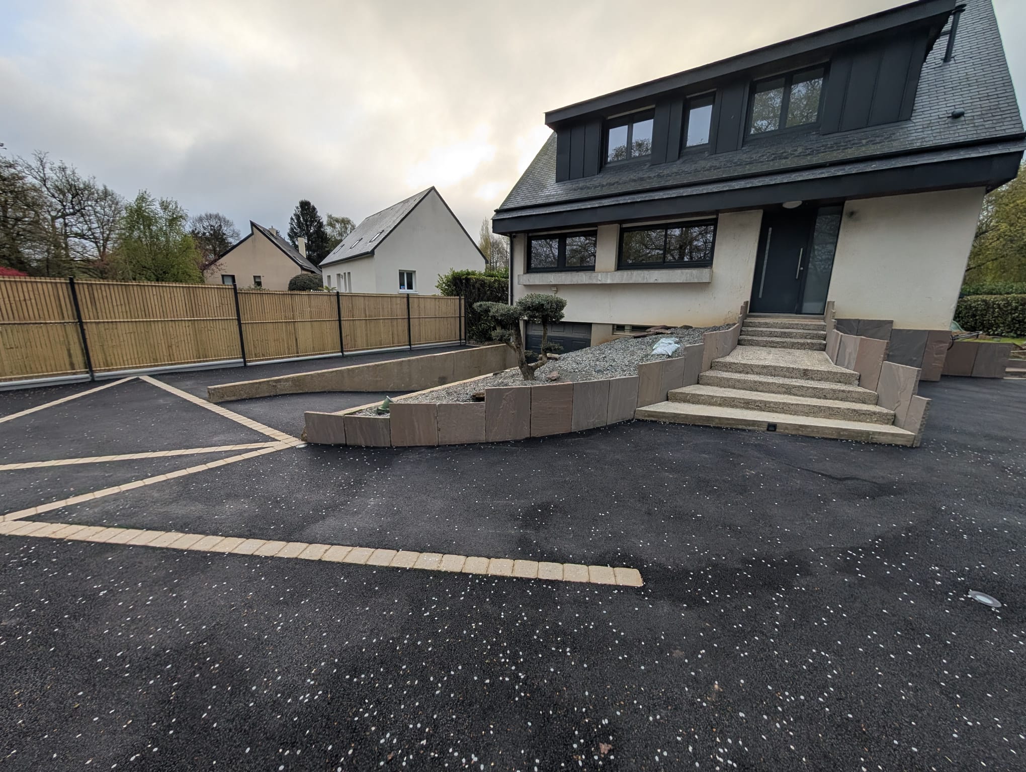 L’enrobé Gardeneo Enrobé® assure une excellente tenue face aux passages répétés et aux conditions climatiques. Il garantit une surface stable, durable et parfaitement adaptée aux accès de maison utilisés quotidiennement.