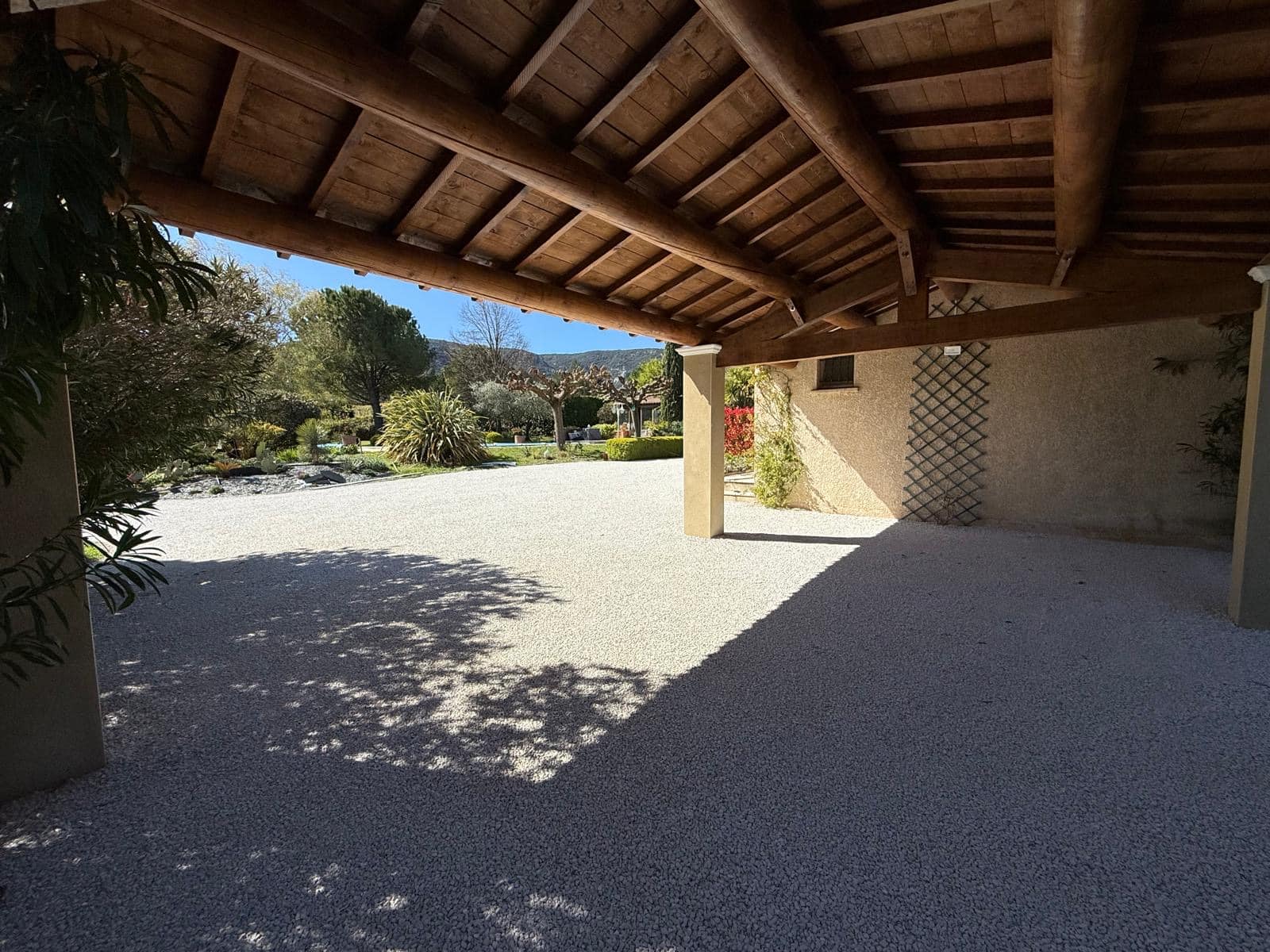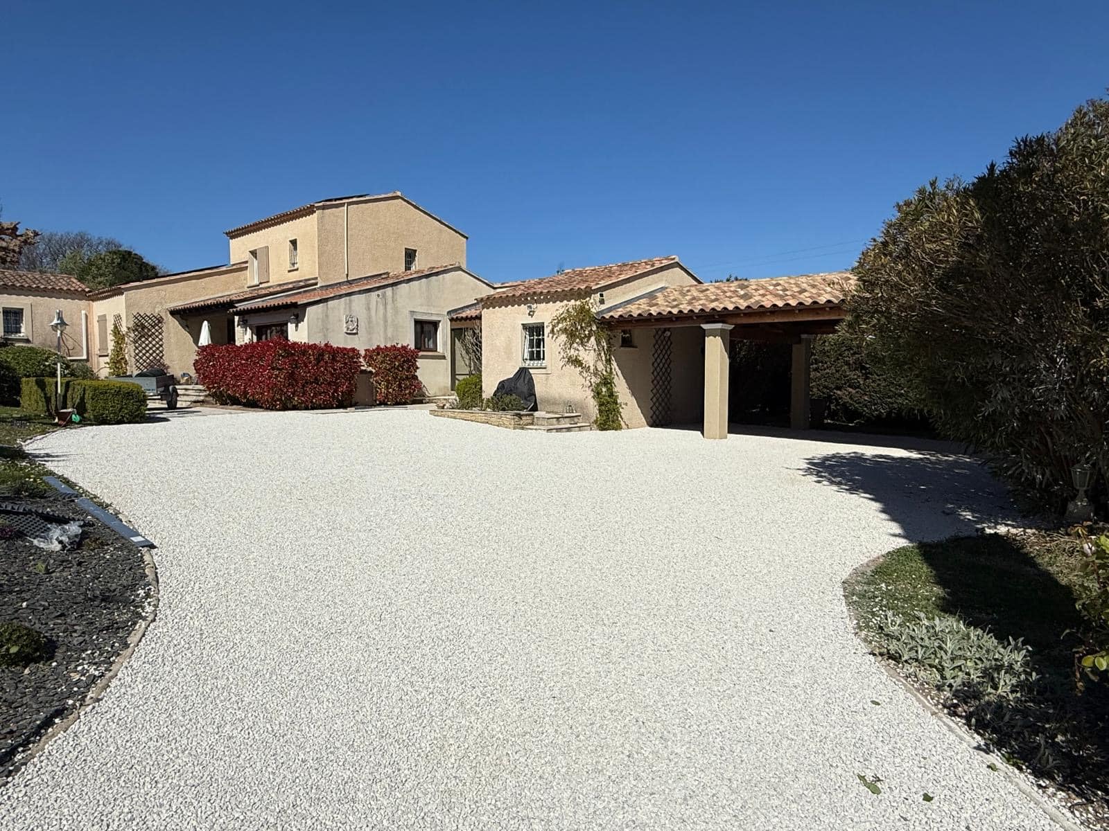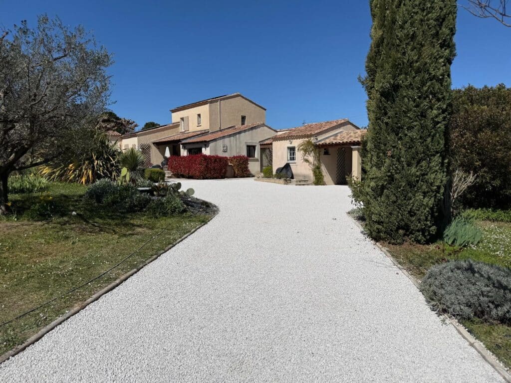 Une entrée de maison en gravier stabilisé à Maubec stable et fonctionnelle