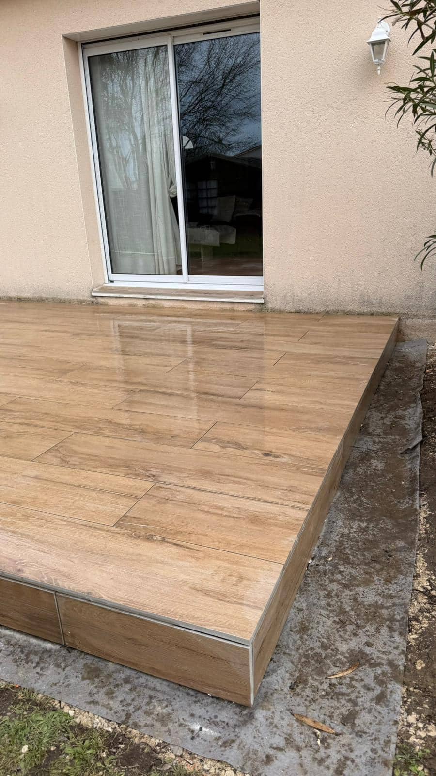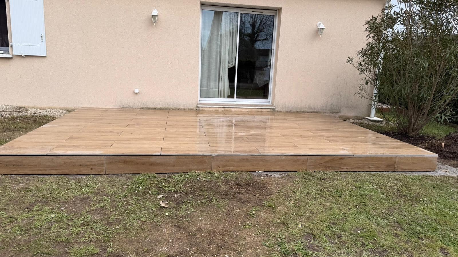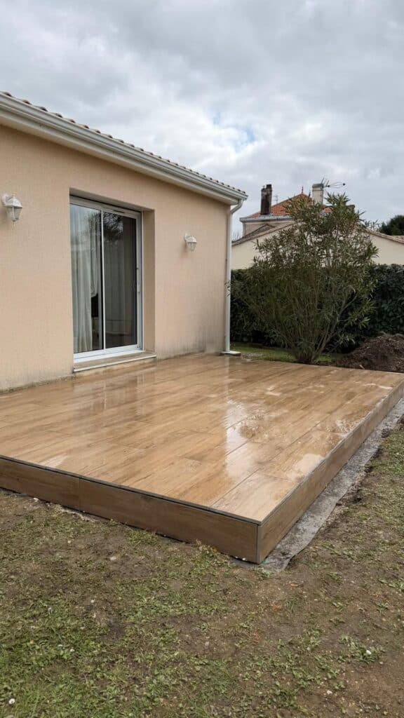 Cette terrasse en grès cérame sur plots à L’Isle-d’Espagnac offre une surface stable et esthétique. Elle crée un espace extérieur confortable.